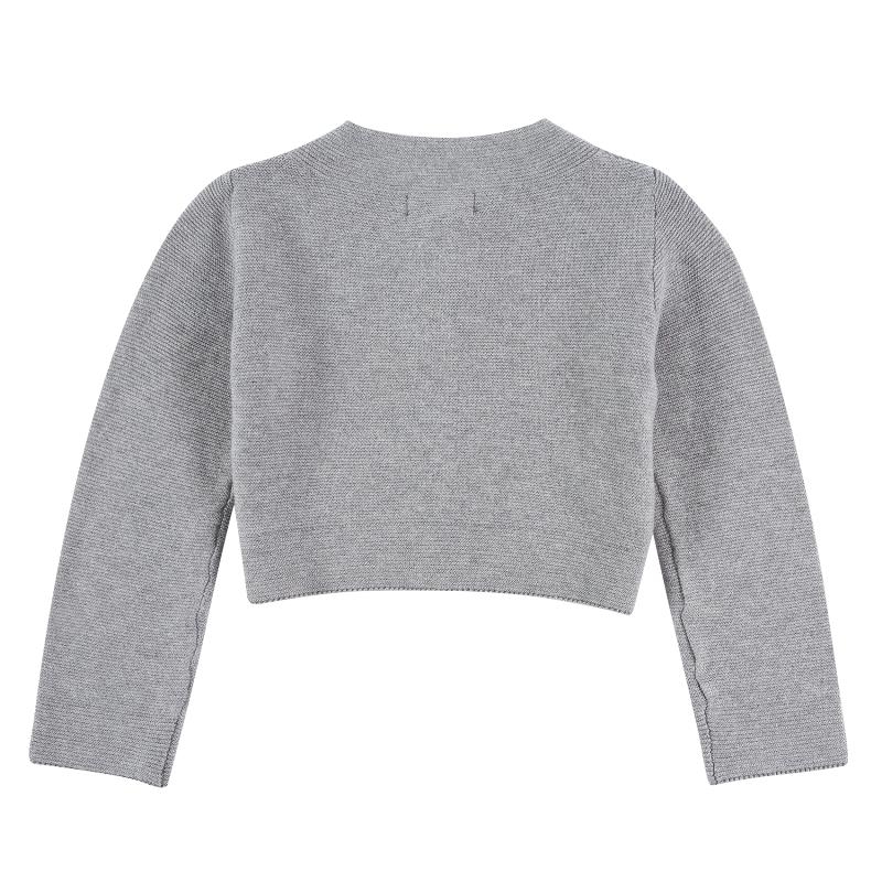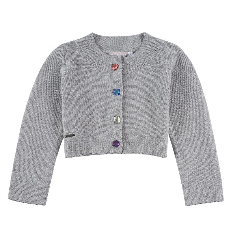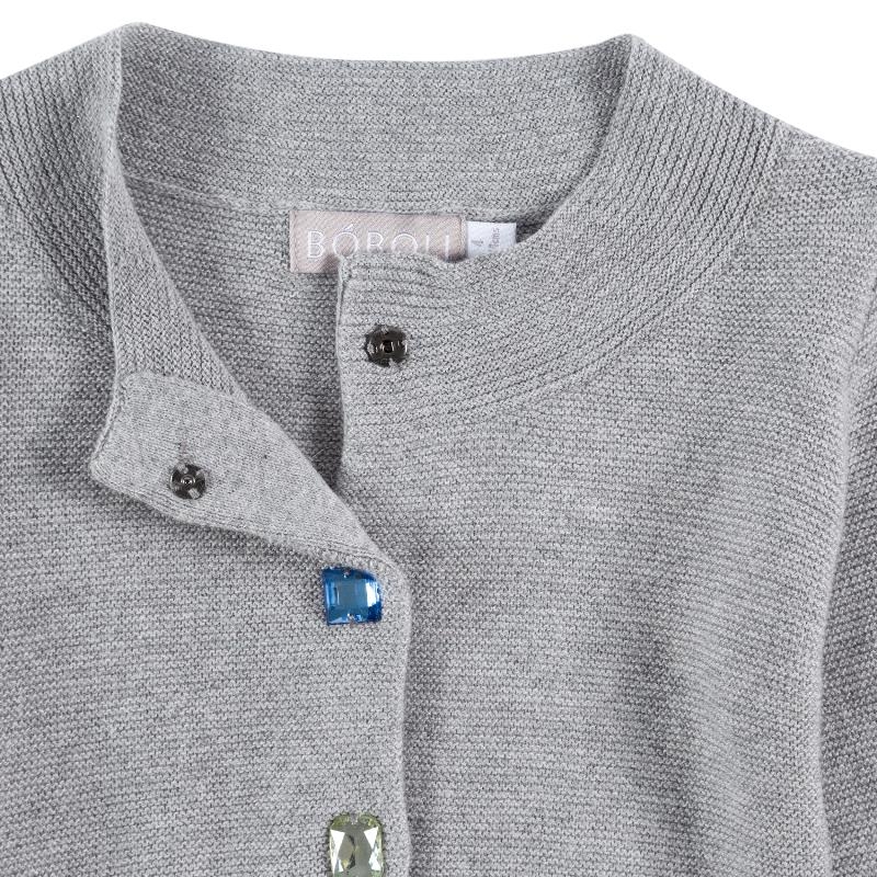 - Jednoduchý šedivý dívčí svetr s barevnými knoflíky. Vhodný doplněk snad úplně ke všemu...