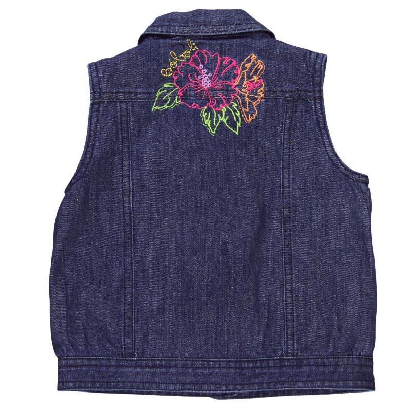 - Dívčí vesta s kapsami na přední straně, na zadní straně vyšit květinový vzor.